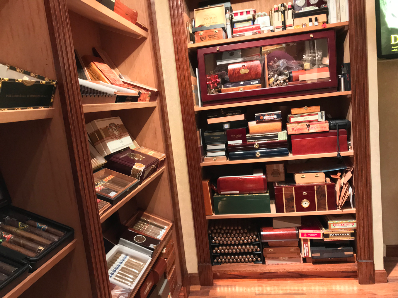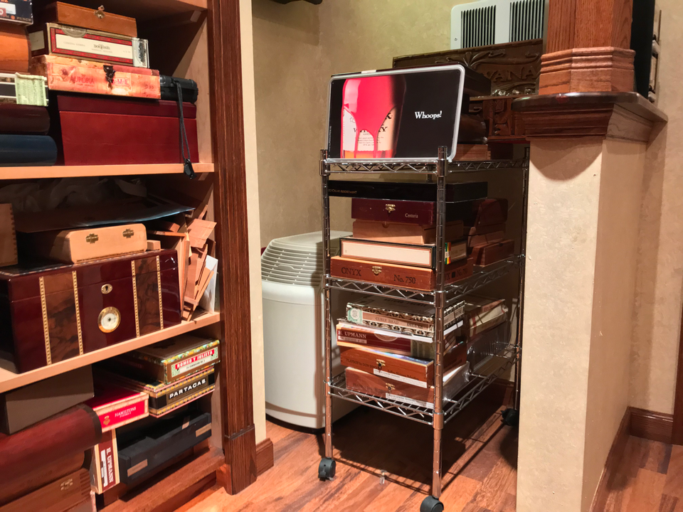 While this is a climate-controlled room for storing and preserving my cigar collection, I also wanted to create something of a showroom to highlight my growing collection. As my first and only construction project to date, I think it turned out ok. 21 years later, the temperature and humidity are constantly maintained and managed.